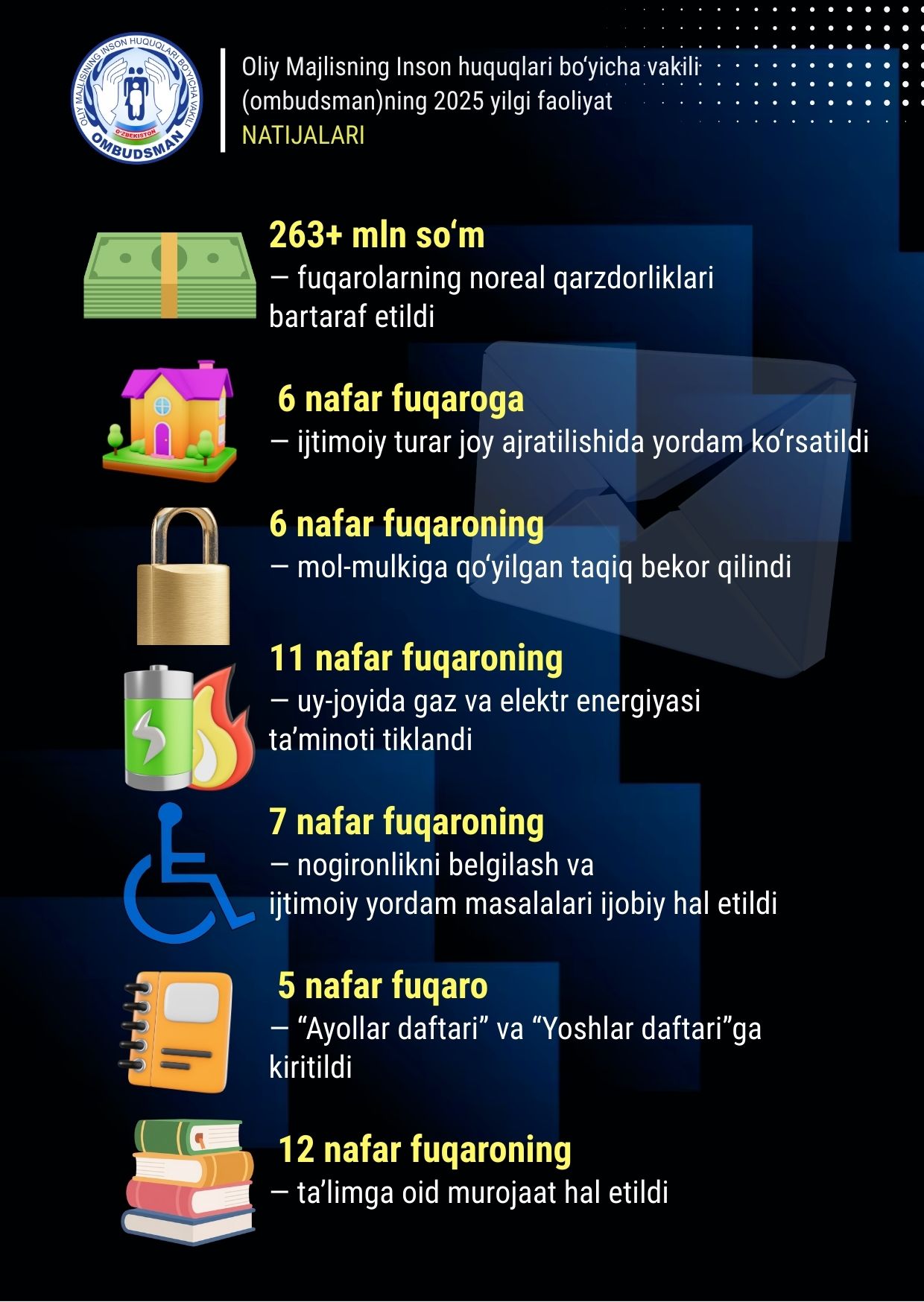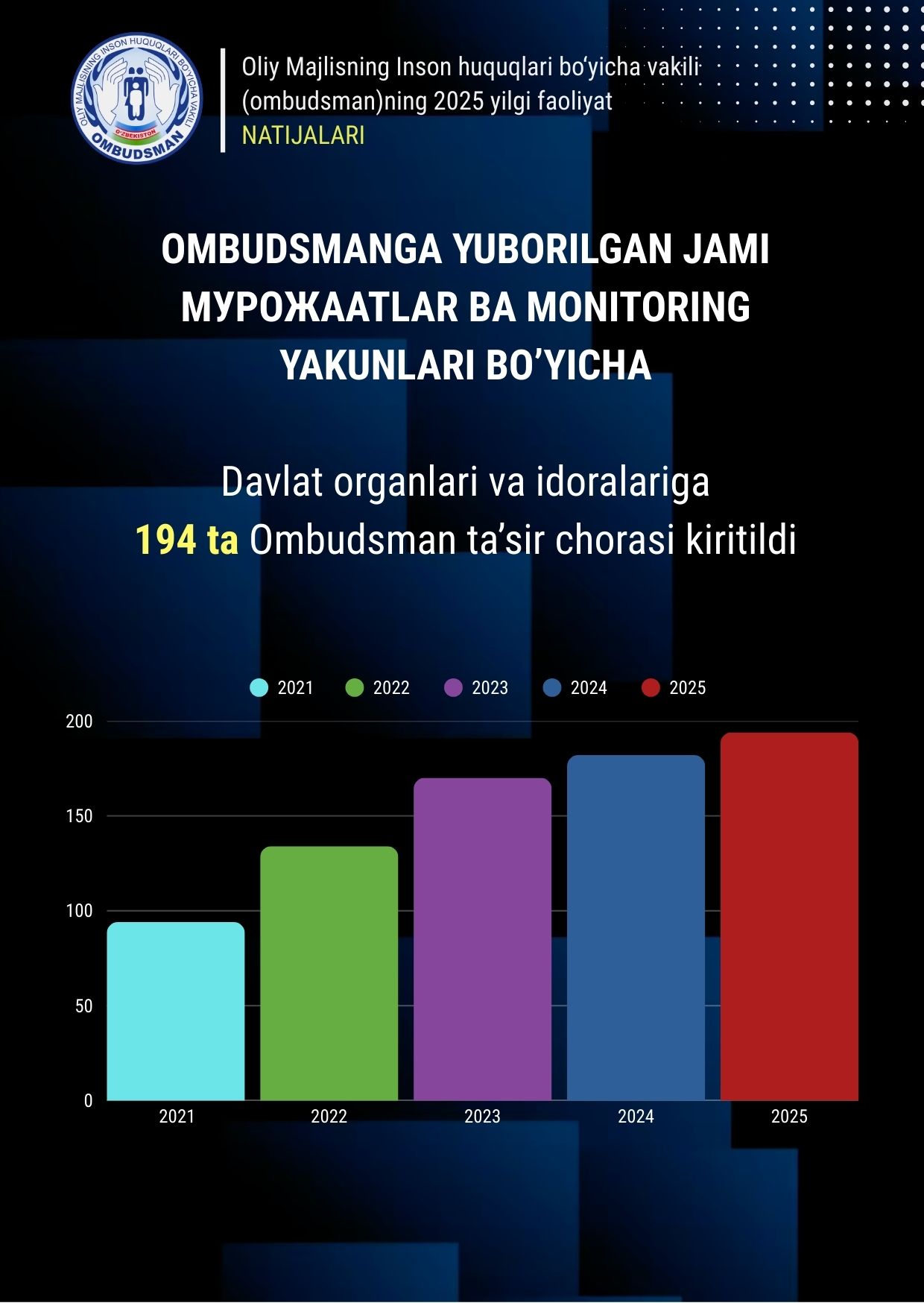Ўзбекистон Республикаси Олий Мажлисининг Инсон ҳуқуқлари бўйича вакили (омбудсман) расмий сайтининг электрон шаклдаги аризаларни қабул қилиш учун мўлжалланган интернет қабулхонаси